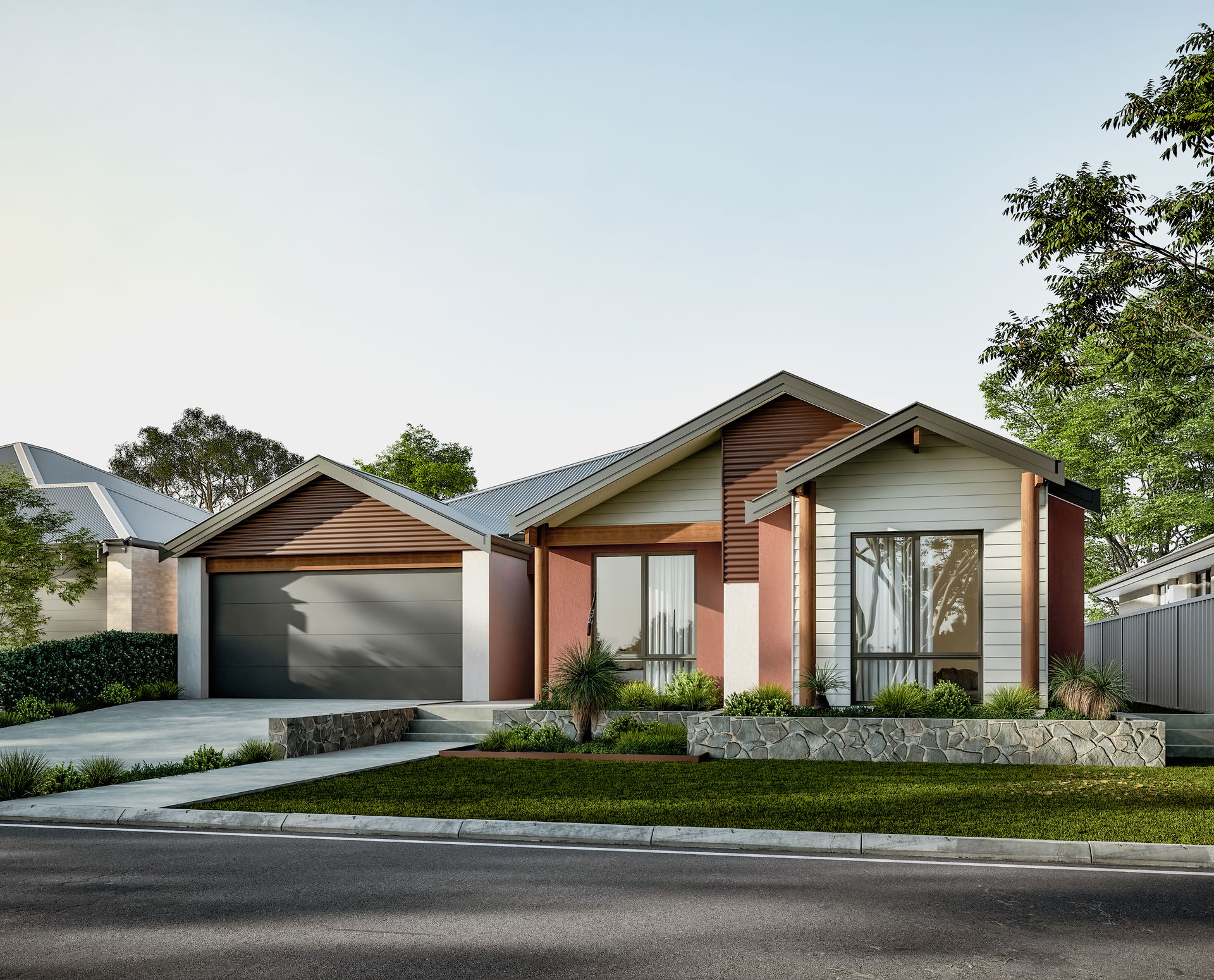 A smaller frontage bedecked with weatherboard cladding and stylish render announces the Evergreen, an innovatively designed home suited to urban backdrops. The interior promotes both intimately private and inviting social spaces, offering the best of both worlds.